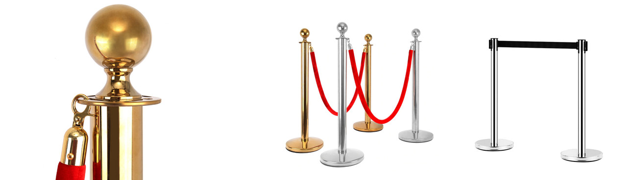 3x Queue Barriers + 2 Ropes Crowd Control Bollards Stands (GOLD WITH RED ROPE)
